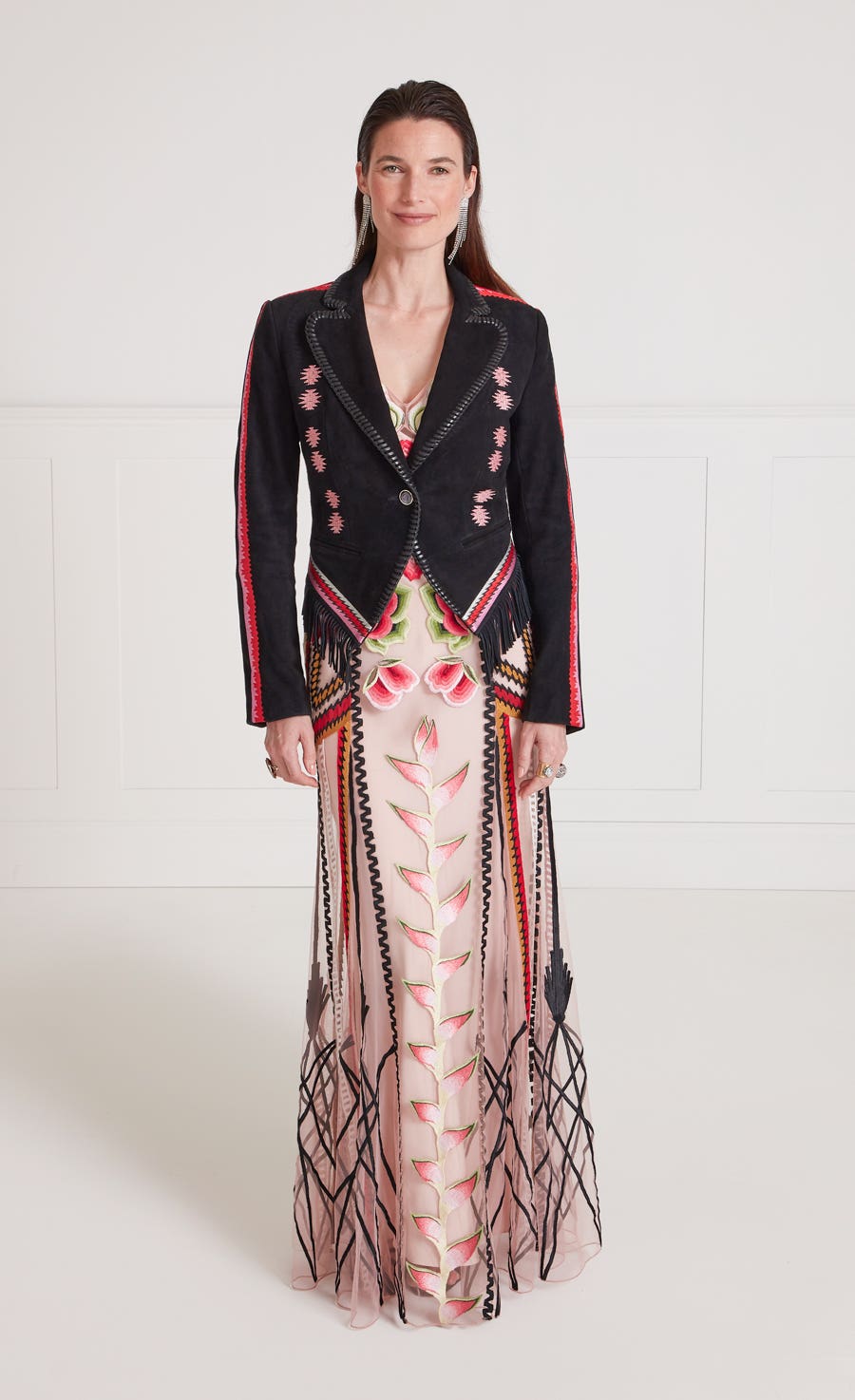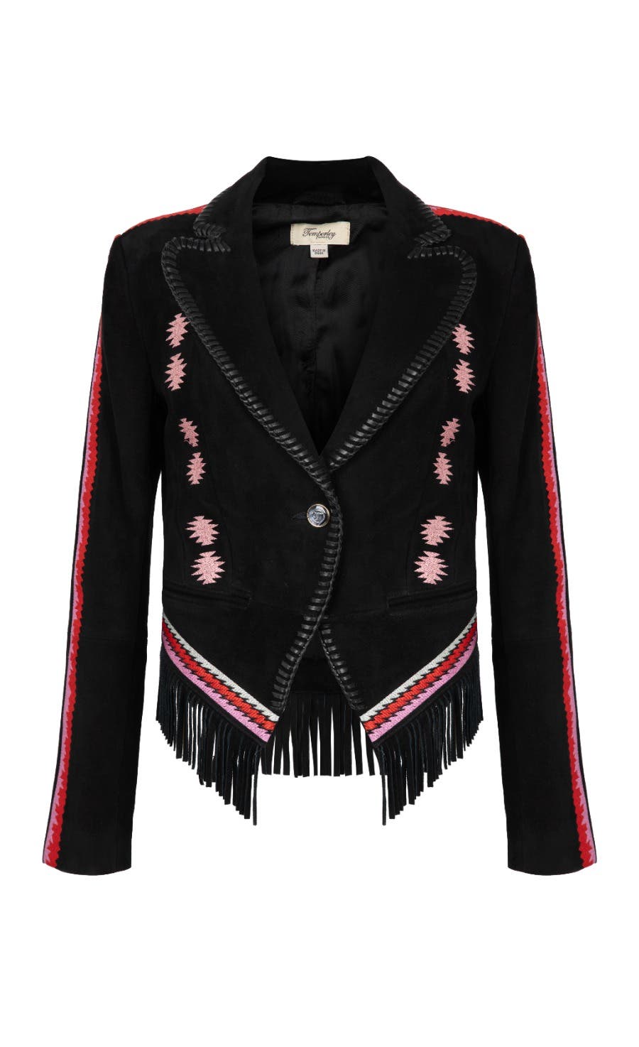 Adding instant wow factor for both day and night, the Zola Jacket is fitted to hug the waist, emboldened with contrasting stitch detailing, swaying fringing and striking embroidered motifs. Made from the softest suede, in black and tan.